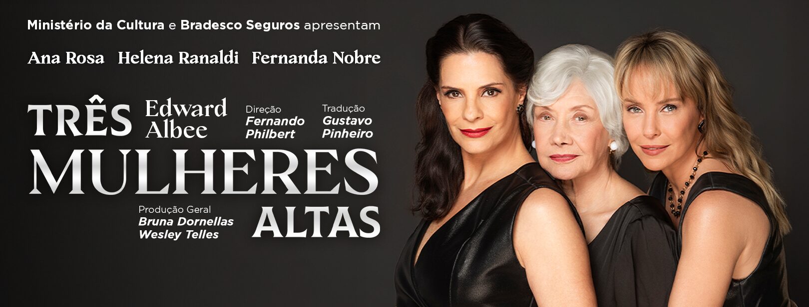 Escrita por Edward Albee (1928-2016) no início da década de 90, ‘Três Mulheres Altas’ logo se tornou um clássico da dramaturgia contemporânea. Perversamente engraçada – como é a marca do autor – A peça recebeu o Prêmio Pulitzer e ganhou bem-sucedidas montagens pelo mundo, ao trazer o embate de três mulheres em diferentes fases da vida: juventude, maturidade e velhice. Dirigida por Fernando Philbert, a nova versão da peça que traz no elenco Ana Rosa, Helena Ranaldi e Fernanda Nobre, tem tradução de Gustavo Pinheiro e produção da WB Entretenimento de Bruna Dornellas e Wesley Telles. Em seu quinto ano consecutivo em cartaz, o espetáculo segue colecionando plateias lotadas e reconhecimento por onde passa. Nesse percurso a montagem recebeu indicações a grandes prêmios, como: Cesgranrio, Bibi Ferreira e Cenym.
